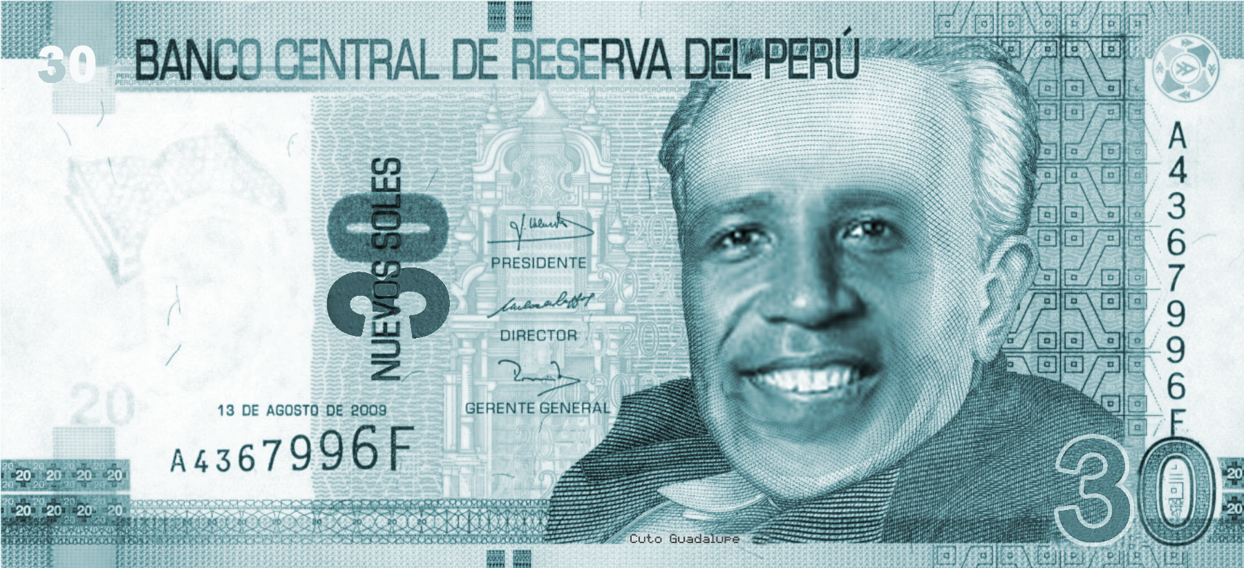 Billete de 30 soles para la cara del Dios Cuto